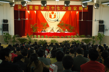 隨后,院黨委副書記、院長趙良慶宣讀《中國共產黨第十七次全國代表大會傳達提綱》,進而結合我院“地方性、應用型、國際化”的辦學特色,提出具體要求。他強調:要加強領導,高度重視,充分認識和學習宣傳貫徹十七大精神的重要性和必要性,將貫徹落實十七大精神主題教育活動作為當前一項政治任務來抓。同時要深入領會和準確把握黨的十七大的基本精神,要認真研讀黨的十七大文件,原原本本學習黨的十七大報告和黨章,全面準確學習領會黨的十七大精神。并且要注意宣傳方式,營造氛圍,充分發揮自身優勢,多渠道、多形式、多層次地做好貫徹落實十七大精神主題教育活動的宣傳工作。還要結合實際,突出特色,在活動形式、活動內容、活動風格和活動效果上,切實把握大會精神實質,結合師生員工實際需求,把貫徹落實十七大精神主題宣傳教育活動辦出特色、辦出水平。