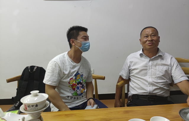 圖為調研成員正在采訪原下黨鄉黨委副書記劉明華