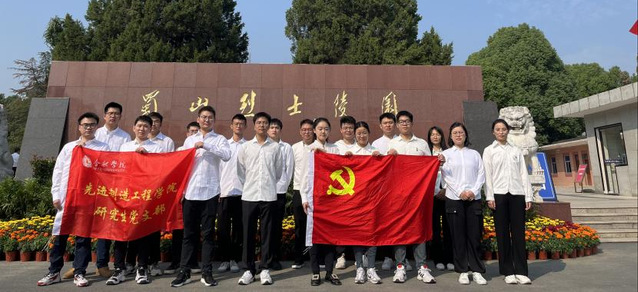 盛世中華舉國慶,緬懷先烈聚精英。繁榮昌盛換人間,江山萬代勇前行。2022年9月30日,安徽省暨合肥市烈士紀念日向烈士敬獻花籃儀式和安徽省《烈士光榮證》頒授儀式在蜀山烈士陵園隆重舉行,先進制造工程學院研究生黨支部二十名黨員作為我校學生代表,參與本次向烈士敬獻花籃儀式。