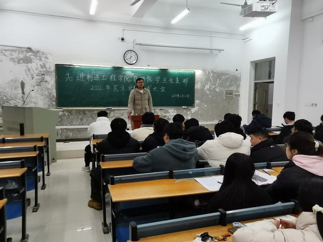 2023年2月16日晚上,合肥學院先進制造工程學院自動化學生黨支部于36棟101教室召開了2022年度民主評議黨員組織生活會。本次會議由自動化學生黨支部書記梅志強同志主持,自動化全體黨員參加了會議。