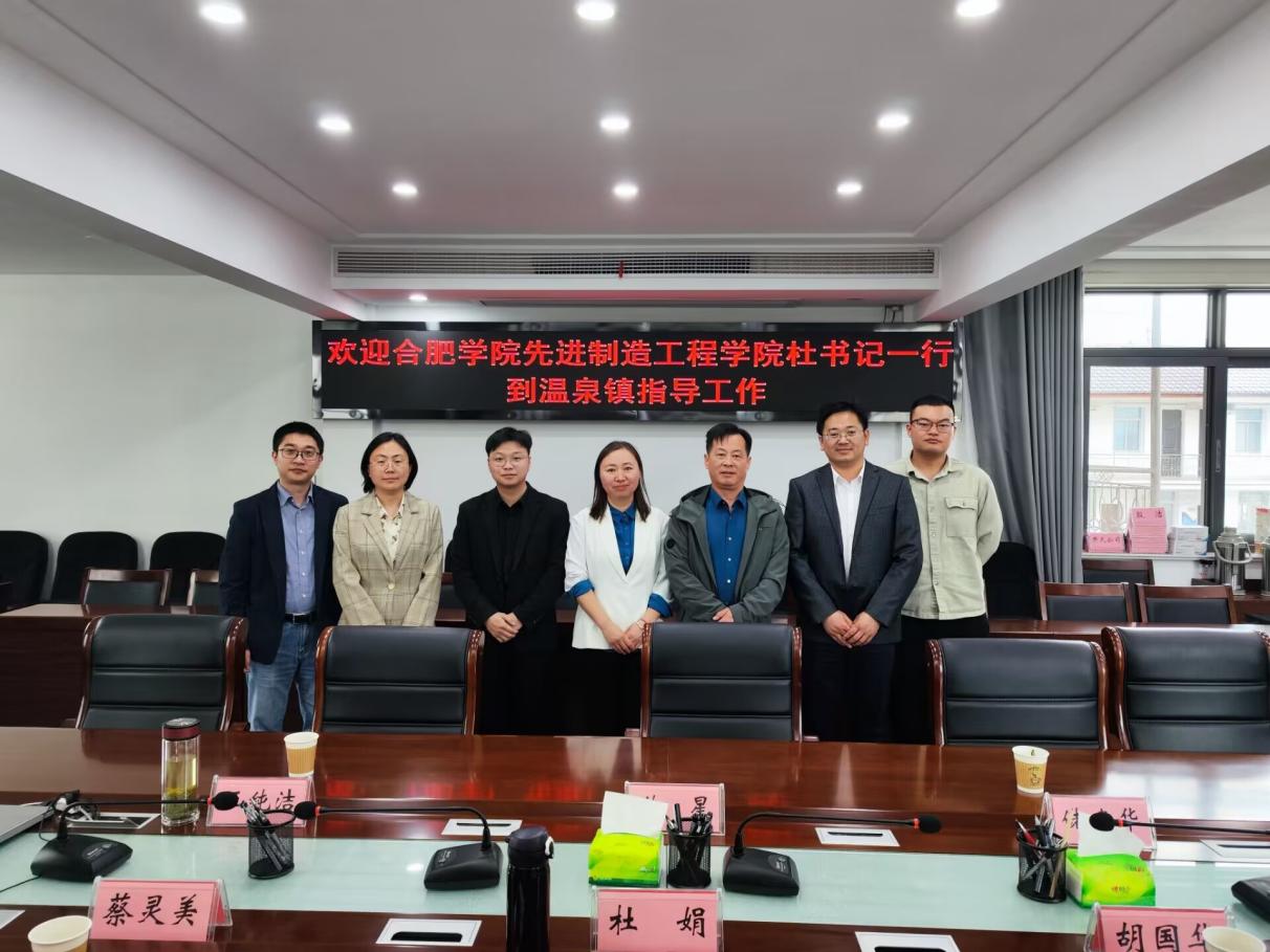 座談會上,溫泉鎮黨委書記洪星首先對先進制造工程學院領導一行的到來表示歡迎,隨后,通過溫泉鎮宣傳片簡要介紹了當地的區位資源、產業發展、旅游文化等相關情況。在談到我院畢業生徐亞根時,洪書記給予了高度的贊賞,并向合肥學院對優秀人才的培養表示感謝。徐亞根向老師們匯報了個人工作歷程、工作感悟和今后發展規劃,向母校的培養和老師們的關懷表示感謝。