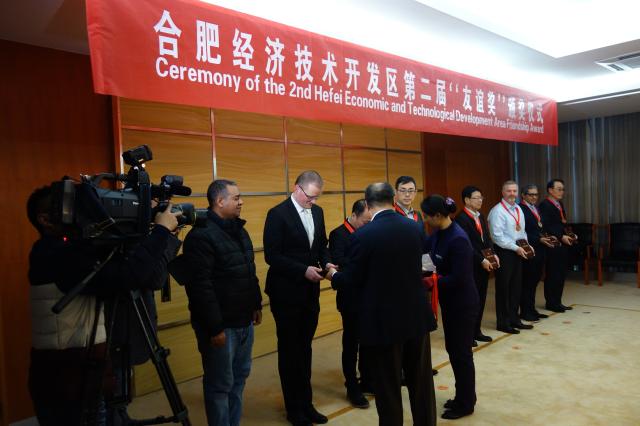 2018年12月10日,合肥經濟技術開發區管理委員會授予了湯衛思教授第二屆合肥經濟技術開發區友誼獎,該獎項授予八位國際專家,以表彰他們對HEDTA(合肥學院的合肥經濟技術開發區)社會經濟發展的支持和友好合作。該獎項表明我們團隊的工作得到了地方政府的認可。此獎項還顯示了HEDTA(合肥學院的合肥經濟技術開發區)的國際性和日益重要的意義,來自六個不同國家和三個部門(工業、研究和教育)的受援者受到了表彰。