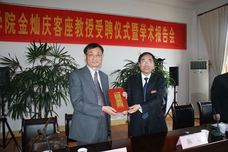 陳院長為金燦慶教授頒發客座教授聘任證書