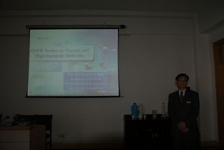 伴著熱烈的掌聲,副院長陳嘯為金燦慶教授頒發了客座教授聘任證書,并為金教授佩戴了合肥學院校徽。儀式結束后,金教授作了關于“高能材料分子的設計與開發”學術報告,并與化工系教師進行了深入交流,現場氣氛十分熱烈。儀式上,邵主任介紹了金教授豐碩的研究成果。