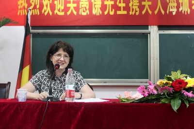 關愚謙先生則以幽默詼諧的語調為大家具體介紹了中西文化的差異。首先,他指出,每一位到西方去的中國人都必須充滿自信,做到自敬自愛,因為只有這樣才能夠得到西方人的尊敬,并要求我們要熱愛自己的祖國,慷慨激昂,發人深省。講座中,關愚謙先生及海珮春女士均多次表示為中國,尤其是安徽地區的快速發展感到驚嘆。