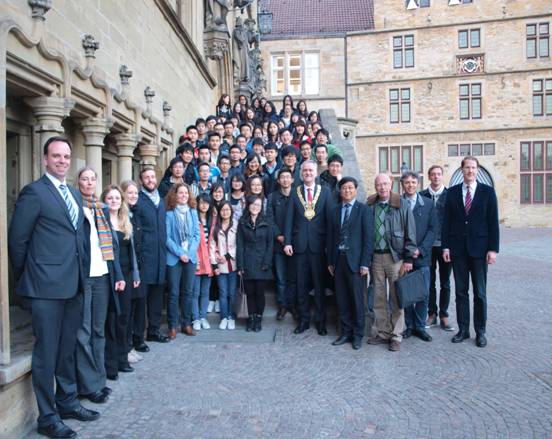 3月11日下午,德國奧斯納布呂克市市長烏爾夫岡?格里塞爾特先生在奧斯納布呂克市市政廳和平大廳會見了合肥學院中德合作物流專業(LOGinCHINA)全體學生。烏爾夫岡?格里塞爾特市長高度評價了合肥學院與奧斯納布呂克應用科學大學的合作為合肥市與奧斯納布呂克兩市交流合作做出的貢獻,高度贊賞中德合作物流專業的辦學模式和辦學成效,勉勵同學們在奧斯納布呂克不僅要努力學習,而且要更多了解這個在歐洲歷史具有重要意義的城市。市長向同學們介紹了奧斯納布呂克這座城市的歷史,并給所有同學贈送了他的個人名片。參加會見的有LOGinCHINA項目德方負責人Schüller教授、安徽省教育廳特聘教育顧問、我??妥淌贐lum教授、我校外事處副處長孫建安等。