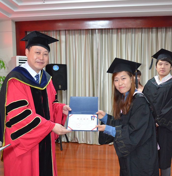 本次畢業的10位留學生全部來自漢拿大學,蔡敬民在總結講話中說,漢拿大學坐落在美麗的濟州島,是一所不斷創新,不斷改革,不斷發展的學校,學校校長室用漢字寫的“創新”二字讓他印象深刻。他指出,合肥學院作為應用型本科高校,辦學特色鮮明,很多舉措在全國同類高校中具有開創性、前瞻性。合肥學院與韓國高校的合作辦學也得到了韓國政府的高度關注,韓國兩任駐華大使金夏中和李揆亨先后訪問我校,我院韓籍客座教授趙誠惠是第一位被授予中國政府“友誼獎”的韓國公民。蔡敬民還表示,合肥學院將進一步加強與韓國高校的合作,拓展合作領域,創新合作模式,為中韓文化、經濟交流培養更多的人才。最后,蔡敬民充滿深情的對獲得學位的留學生說,畢業不等于離校,希望各位同學在工作忙碌之余不忘常回母校看看,重拾在母校學習生活的美好回憶。