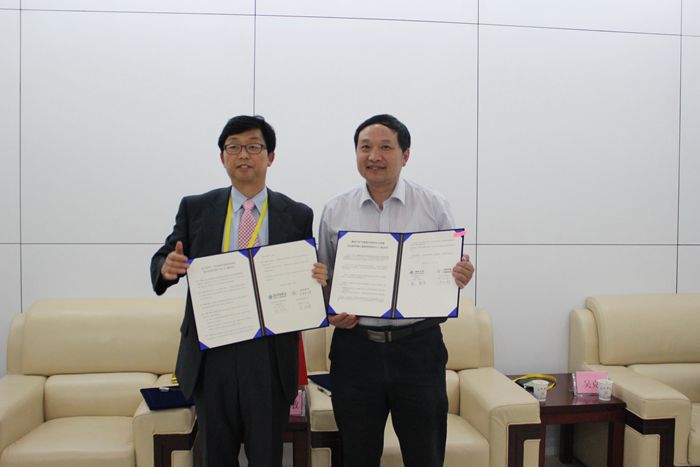 5月15日,外事處處長吳克教授、生物系副主任俞志敏教授代表合肥環境工程研究院與來訪的韓國湖西大學氣候變化特性化大學院負責人鄭鎮度教授就雙方聯合開展科學研究、人才培養和產學合作等方面進行洽談,達成共識。會談結束后,俞志敏教授與鄭鎮度教授共同簽署了全面合作協議。