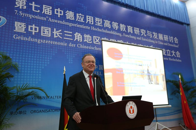 11月12日,由安徽省教育廳、德國下薩克森州科學(xué)與文化部主辦,合肥學(xué)院、黃山學(xué)院承辦的第七屆中德應(yīng)用型高等教育研究與發(fā)展研討會(huì)暨中國長三角地區(qū)應(yīng)用型本科高校聯(lián)盟成立大會(huì)在合肥學(xué)院舉行。來自德國和國內(nèi)近百所高校、企業(yè)代表400余人參與了此次研討會(huì)。德國下薩克森州政府州長施特凡?魏爾、國務(wù)秘書比爾吉特?霍內(nèi),安徽省外辦主任張箭,教育廳廳長程藝,合肥學(xué)院黨委書記蔡敬民、校長張文兵,黃山學(xué)院黨委書記徐成鋼、校長汪建利等出席。論壇開幕式由安徽省教育廳副廳長李和平主持。