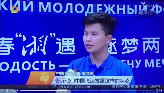 我校學(xué)生代表積極參與活動(dòng),受到媒體的關(guān)注,經(jīng)濟(jì)系學(xué)生梁奕彪在接收湖南衛(wèi)視記者采訪時(shí)說到:“本次論壇的開辦對(duì)于中俄雙方都具有十分重要的意義”“通過這次活動(dòng)可以告訴他們中國(guó)飛速發(fā)展的狀態(tài),相互借鑒,分享經(jīng)驗(yàn)。”