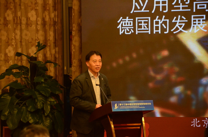 亨德里克·拉克勒以《職業(yè)教育與學(xué)術(shù)教育的有機融合——以新建的漢堡職業(yè)大學(xué)為例》為主題,指出了學(xué)術(shù)和職業(yè)教育融合的新模式,為應(yīng)用型大學(xué)的發(fā)展提供了新思路和方法。報告過程中,亨德里克·拉克勒具體介紹了漢堡職業(yè)大學(xué)的運行機制,并指出一體化教育培訓(xùn)模式會成為雙元制大學(xué)教育機制的有力補充。