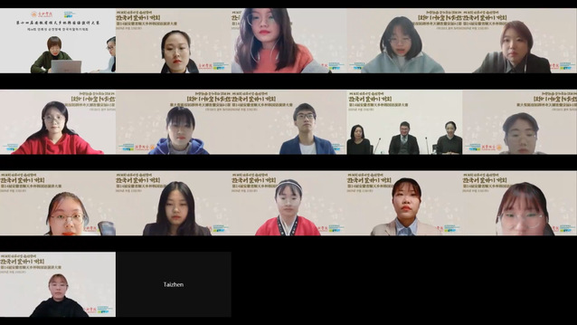 本次大賽共有“演講視頻選拔”和“線上知識問答”兩個環節,全程在線上進行。大賽以“我印象中的韓國”為主題,吸引了省內10所高校的24名選手參賽。經過大賽評委組的選拔,最終有16名選手晉級決賽。決賽階段的韓語知識問答環節對每一位參賽選手提出了更高的要求。選手需要用準確、清晰、流暢的韓語回答評委的提問,評委根據選手的表現評分。選手成績由演講視頻分數和現場在線問答分數相加組成,由高到低排序。最終,安徽外國語學院的陳璇同學獲得本次大賽的特等獎,馬鞍山師范高等專科學校的吳倩倩同學獲得了大賽金獎。