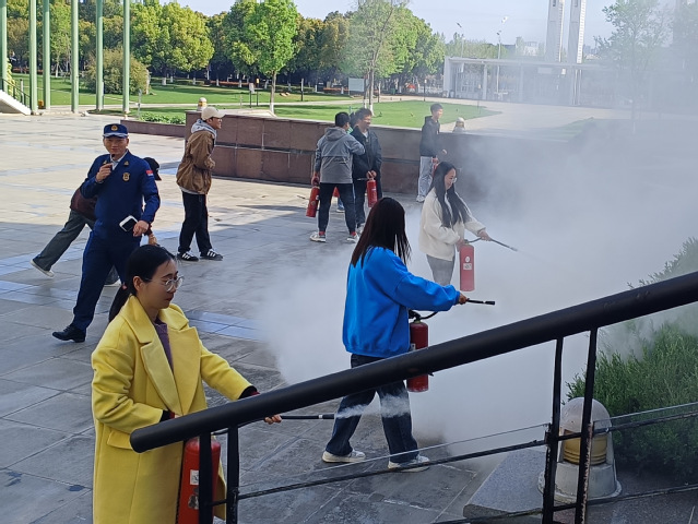 活動開始,學院模擬了火警報警信號。警報響起后,4號教學樓的全體師生根據指示快速有序地疏散到教學樓外開闊的地方,消防志愿者們維持著現場秩序。隨后單指導員為我院師生講解關于火災預防、滅火技巧、災害應對等方面的知識,并演示、講解了滅火器的使用方法,現場師生在指導員們的指揮下使用滅火器進行滅火訓練,提高了實踐操作能力。