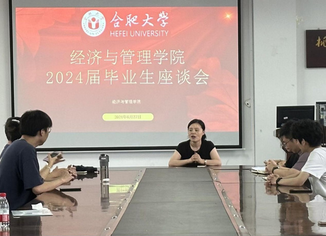 2024年6月27日下午,經濟與管理學院2024屆畢業生座談會于一期6棟二樓會議室召開。經濟與管理學院黨委副書記夏丹青、畢業班輔導員老師和2024屆畢業生代表參加會議。