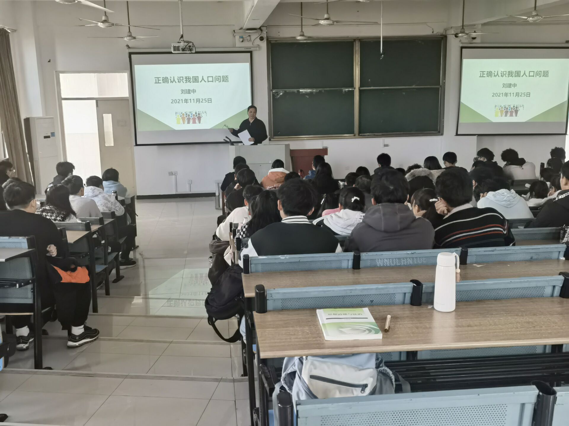 11月25日下午,在38棟教室,校黨委副書記劉建中以“正確認識我國人口問題”為題,為先進制造工程學院21級車輛工程1班、生物食品與環境學院21級生物工程1班、21級食品科學與工程班共115名新生講授了一堂精彩的“形勢與政策”課。
