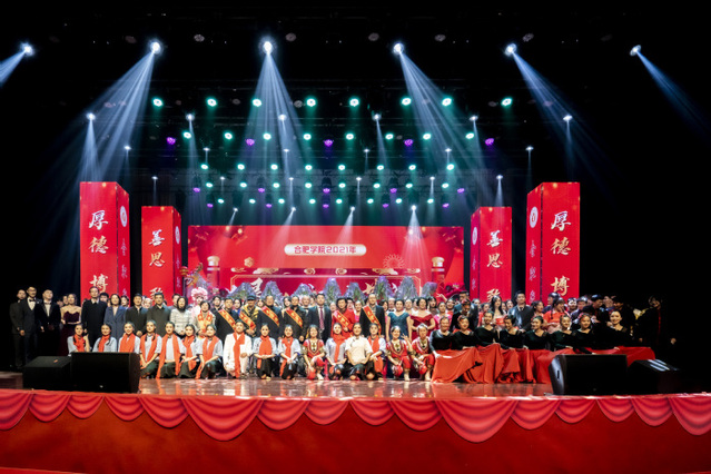 12月21日晚,合肥學(xué)院2021年榮退儀式暨文藝演出于一期致用禮堂隆重舉行,9位新近退休的教職工在前排就座。校黨委書記王其東、校長(zhǎng)吳春梅出席,儀式由副校長(zhǎng)盧平主持。