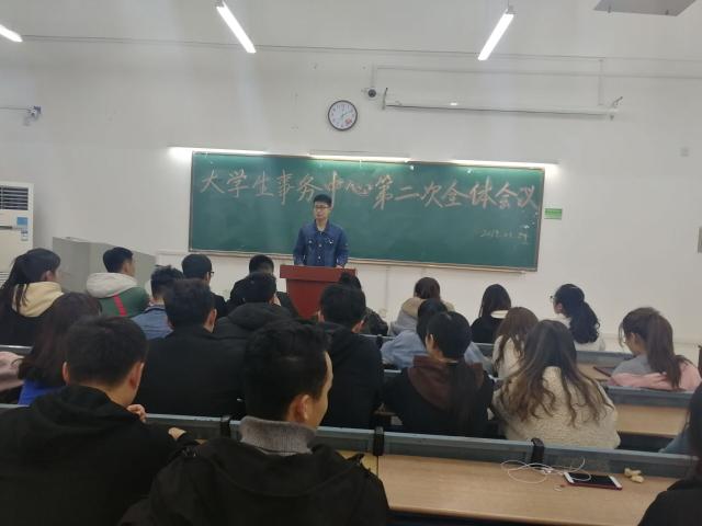 3月24日晚上七點,在三十五棟教學樓206召開了大學生事務中心第二次全體大會,會議由屈立端主持,大學生事務中心全體學生助理參加此次大會。