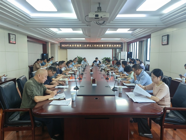 會上,學生處副處長陶龍澤部署開學典禮相關工作以及假期學生安全教育、綜合測評、國家獎助學金評選、醫保等事項。研究生處劉鵬飛介紹了研究生心理測評情況、畢業生信息完善、評獎評優等工作進展。團委李雯雯匯報迎新晚會的籌備情況。學生處劉瑩匯報就業工作進展與近期招聘會組織情況。公體藝部主任許剛部署田徑運動會籌備、學生體測和藝術課、體育課程選課等工作。保衛處副處長田野通報近期電信詐騙情況、交通安全形勢等。丁增云心理健康教育、學風建設、宿舍管理、就業工作、輔導員隊伍建設及假期安全管理等方面進行部署。